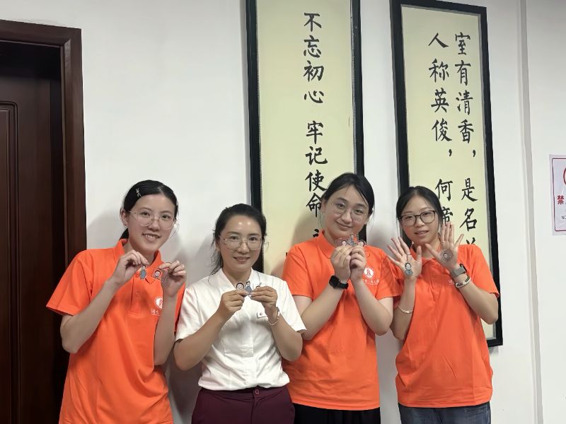 (圖為團(tuán)隊(duì)成員與講解員和自制文創(chuàng)周邊合影留念 吳澤攝)
