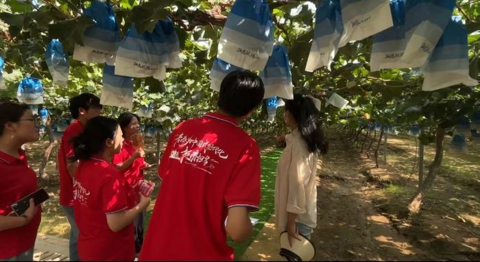 圖為團(tuán)隊成員走訪調(diào)研葡萄園基地 劉雨欣攝