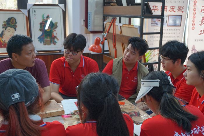 圖為實踐團成員觀看皮影戲。魏娜娜攝