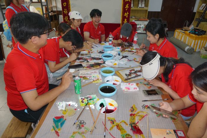 圖為實踐團成員體驗皮影上色。魏娜娜攝