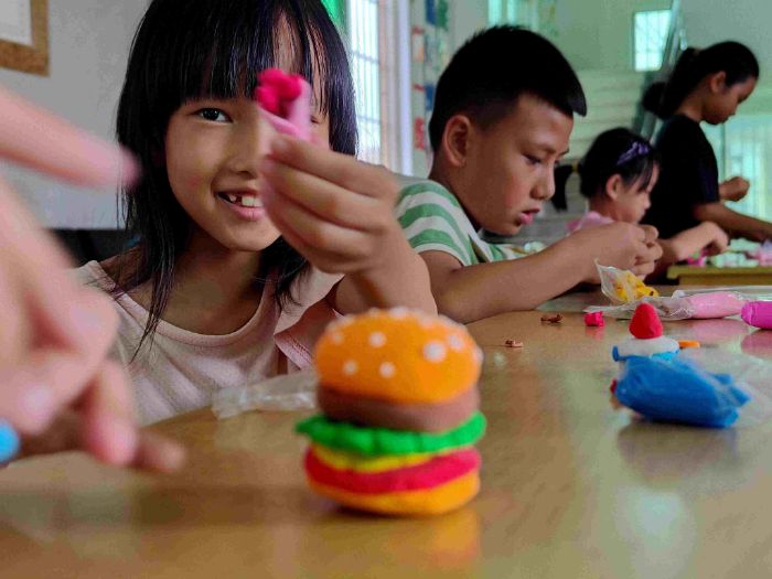 圖為兒童在“畫隨心動(dòng)”工作坊展示粘土作品。劉澤熙 攝