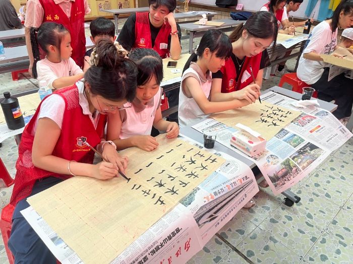 突擊隊隊員們以筆墨書香、楚河漢界、竹絲巧藝為橋,將書法的氣韻、象棋的智慧與竹扇編織的非遺溫度帶進(jìn)社區(qū)日常。他們手把手教孩子們提筆落墨、布局對弈、指尖編結(jié),讓傳統(tǒng)文化的種子在孩子們心田扎根;同時以文化體驗為媒,向社區(qū)孩子們講述紅色歷史故事。這不僅讓孩子們學(xué)會了筆墨傳情、棋藝會友、竹絲寄意,更讓紅色基因在青春心中延續(xù),以民族融合暖流與文化傳承微光,共耀社區(qū)精神家園。
