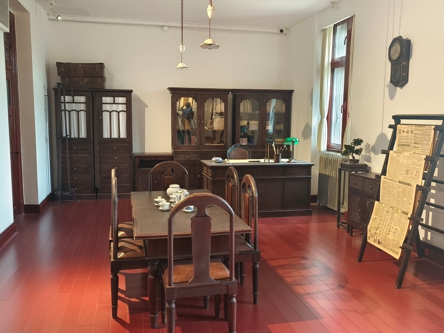 圖為北大紅樓內(nèi)的書桌和報(bào)刊陳設(shè)