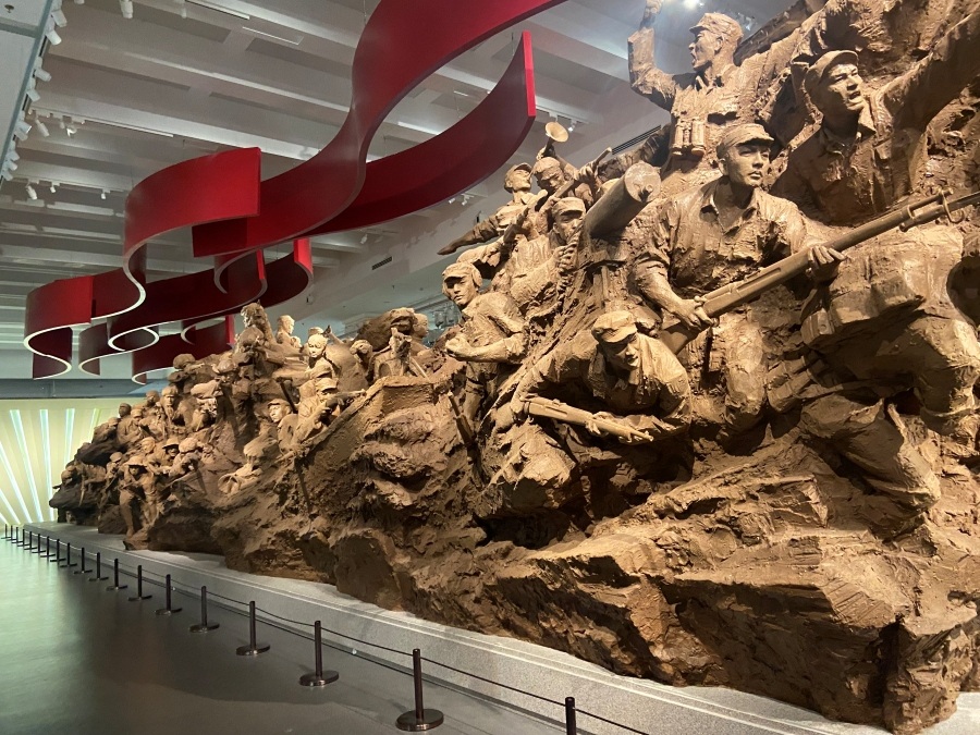 圖為中國人民革命軍事博物館內(nèi)中國共產(chǎn)黨領(lǐng)導(dǎo)的革命戰(zhàn)爭雕像