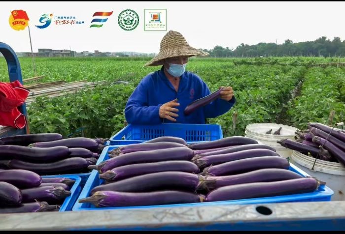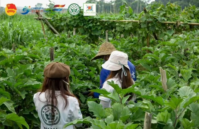 隊(duì)伍繼續(xù)前行,一片茄子地映入眼簾。飽滿的紫色茄子掛滿枝頭,在綠葉的映襯下格外顯眼。田壟間,一位伯伯正忙著采摘茄子,隊(duì)員們便快步上前主動幫忙,一邊麻利地將成熟的茄子放進(jìn)竹籃,一邊與伯伯拉起了家常。