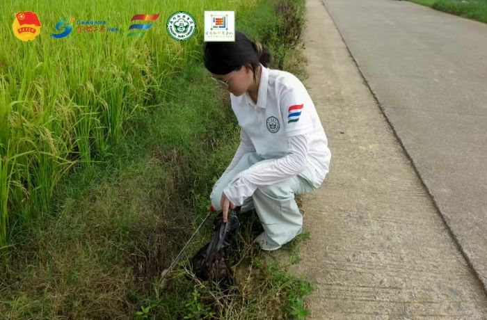 調(diào)研間隙,望著連片田園那承載鄉(xiāng)村生機(jī)與希望的模樣,實(shí)踐隊(duì)員決意以行動守護(hù)這份美好。隊(duì)員們分組沿田埂、村道散開,手持工具細(xì)致?lián)焓八芰侠U棄農(nóng)藥瓶等雜物。陽光炙熱,汗水浸透衣衫,卻擋不住隊(duì)員們的熱忱。近兩小時俯身勞作后,村道和田邊變得潔凈整齊,田園在清風(fēng)中更顯清爽雅致,如拭去蒙塵的畫卷重?zé)ü獠省_@不僅是一次垃圾清理,更是隊(duì)員與鄉(xiāng)村的深度對話。他們以雙手拂去土地“傷痕”,彰顯自然本真之美,更以行動踐行青年對鄉(xiāng)村振興的擔(dān)當(dāng),為美麗鄉(xiāng)村畫卷添上青春亮色。