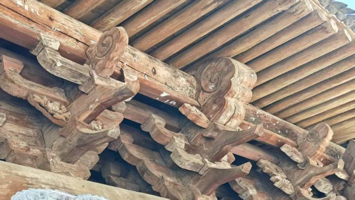 "東岳獻殿的斗拱設(shè)計和結(jié)構(gòu)韻律感,體現(xiàn)了古代工匠的高超技藝。"小隊隊長張揚介紹道,"雖然大部分木構(gòu)件已出現(xiàn)朽化,但那些精美的花紋依然清晰可見,具有重要的藝術(shù)價值。并且化羊廟東岳獻殿,是西安地區(qū)現(xiàn)存唯一的元代建筑,對研究我國元代建筑形制具有重要的價值。東岳獻殿嚴謹、簡明的結(jié)構(gòu)與構(gòu)造做法,整體建筑風(fēng)格敦厚大氣,是體現(xiàn)元、明時期木構(gòu)建筑營造做法發(fā)展演變和建筑形制的珍貴實物。"