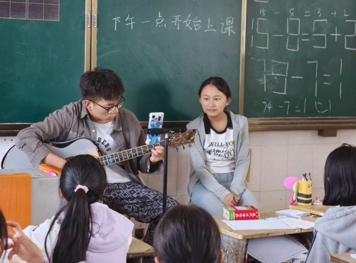 律動(dòng)藝術(shù)滋養(yǎng),強(qiáng)健少年體魄。音樂(lè)與運(yùn)動(dòng)是滋養(yǎng)心靈、強(qiáng)健體魄的重要方式。“音樂(lè)律動(dòng)”課上,志愿者懷抱吉他彈奏輕快的旋律,孩子們跟著學(xué)唱,稚嫩的歌聲回蕩在教室;清晨的“早操”時(shí)間,志愿者與孩子們跑步,整齊的步伐與響亮的口號(hào)展現(xiàn)出少年的朝氣。藝術(shù)的熏陶讓孩子們感受美、表達(dá)美,運(yùn)動(dòng)的汗水則讓他們?cè)陉?yáng)光下茁壯成長(zhǎng),身心都得到了舒展與鍛煉。