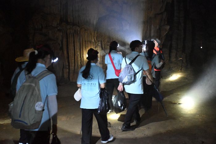 環(huán)線的核心亮點之一——“天心眼”溶洞,向實踐團揭開了喀斯特地貌的神秘面紗。鄭隊長耐心講解溶洞的地質構造與形成過程,隊員們認真記錄下這些珍貴信息,深入地了解自然奇觀背后的科學奧秘。