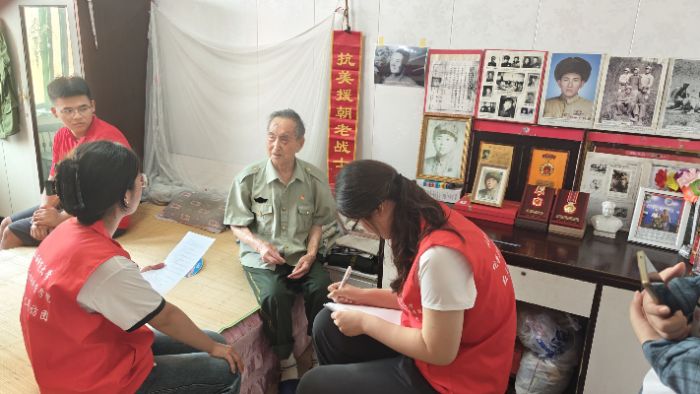 2025年7月16日,山西師范大學化學與化工學院大學生實踐創(chuàng)新黨支部第九期紅色記憶尋訪實踐隊隊員王玉婷、秦一峰、楊騰哲、李佳雪等9名同學懷著崇敬之情來到長治市潞州區(qū)長軸北苑,尋訪曾參加解放戰(zhàn)爭與抗美援朝的英雄老兵馬建春爺爺。這位90歲高齡的革命前輩,以跨越世紀的紅色記憶,為青年學子上了一堂生動的黨史教育課。