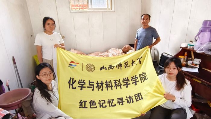 在孝義市光榮敬老院,山西師范大學(xué)化學(xué)與化工學(xué)院大學(xué)生實(shí)踐創(chuàng)新黨支部第九期紅色記憶尋訪(fǎng)實(shí)踐隊(duì)隊(duì)員鄭解霓、任晉昉、董婉君、郭文鑫四人,走近95歲抗戰(zhàn)老兵溫金雙,探尋那段烽火歲月。