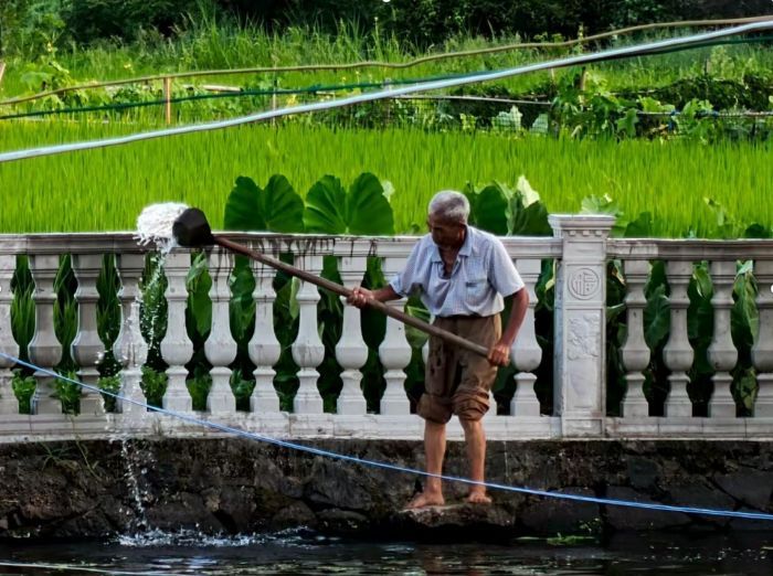 圖為下聶村村民用囤積的雨水澆田 白宇杭攝