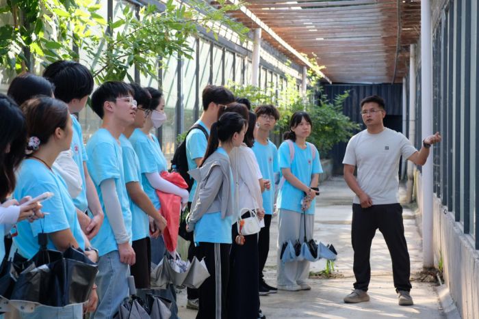圖為團(tuán)隊(duì)成員和白蓮種植戶王建軍交流