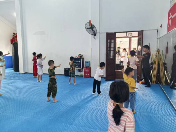 交談后,老師帶我們參觀武館。館內一群小朋友正在認真地上石家拳體驗課,他們中最小的才上中班,最大的也不過是小學生。別看他們年紀小,一招一式學得有模有樣,眼神里滿是對石家拳的好奇與熱愛。臨別時,他向我們贈送了自己參與編寫的《石家拳》。