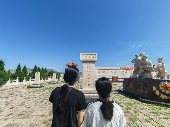 隨后,實(shí)踐隊(duì)員們參觀了園內(nèi)的楊成武題詞紀(jì)念碑、楊成武、王震、曾雍雅三位將軍的漢白玉雕像以及記載廣靈革命歷史的大型花崗巖石碑。在參觀過(guò)程中,隊(duì)員們駐足凝視,認(rèn)真閱讀每一位烈士的英勇事跡,從中深刻感受到了革命先輩們?yōu)榱嗣褡褰夥藕腿嗣裥腋#幌侇^顱、灑熱血的偉大革命精神。