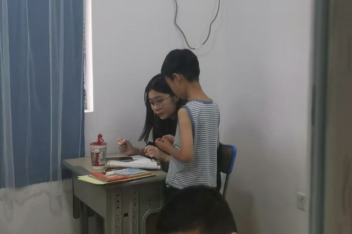圖為實踐隊隊員對學生單獨輔導 毛樂鈴供圖