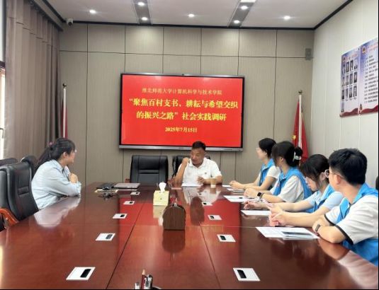2025 年 7 月 15 日,淮北師范大學(xué)計(jì)算機(jī)科學(xué)與技術(shù)學(xué)院“聚焦百村支書,耕耘與希望交織的振興之路”暑期三下鄉(xiāng)社會實(shí)踐團(tuán)隊(duì)走進(jìn)淮北濉溪,與當(dāng)?shù)卮逯钊虢涣鳎綄むl(xiāng)村振興的基層密碼,感受基層治理的強(qiáng)大力量。