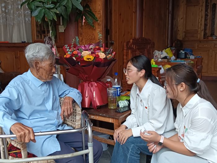 7月15日,玉溪師范學(xué)院“紅色記憶尋訪團(tuán)”成員懷著崇高敬意,攜帶鮮花與慰問品,拜訪了騰沖市一位年逾百歲的抗戰(zhàn)老兵。雖歷經(jīng)世紀(jì)滄桑,老兵精神矍鑠,眼神中透露出歲月淬煉的堅(jiān)韌。