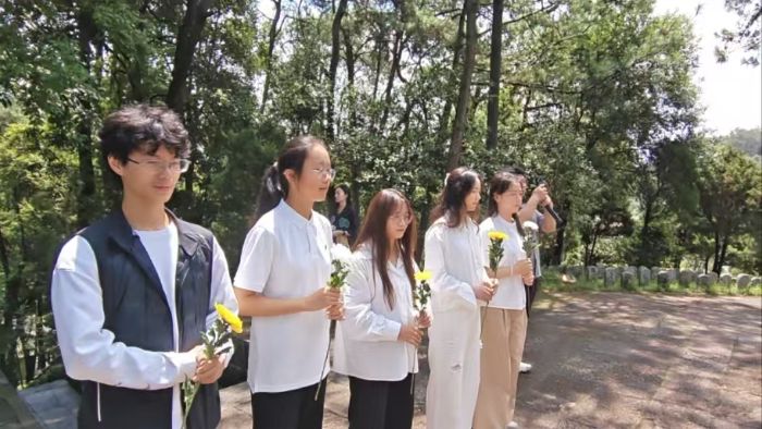 到達國殤墓園后,尋訪團成員在紀念碑前肅立默哀,敬獻花籃后開展以“普通話講英雄,聲聲不息講信仰”為主題開啟微團課錄制。國殤墓園是為紀念民國三十三年收復(fù)騰沖的中國遠征軍二十集團陣亡將士而修建,園名取自《楚辭》“國殤”篇。園內(nèi)滇西抗戰(zhàn)紀念館與墓園融為一體,更全面的再現(xiàn)輝煌的滇西抗戰(zhàn)歷史、弘揚不屈的民族精神,更有利于加強愛國主義教育,對研究和再現(xiàn)滇西抗戰(zhàn)歷史發(fā)揮巨大作用。團隊成果微團課視頻將作為線上紅色教育資源,讓更多人聽見騰沖抗戰(zhàn)的悲壯與輝煌。