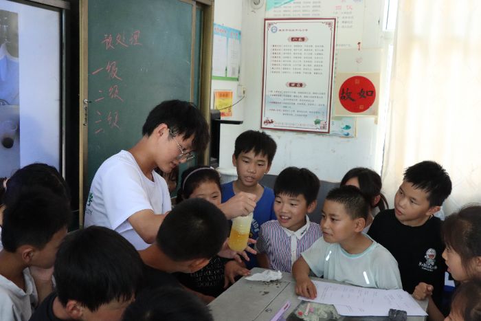 開(kāi)設(shè)課堂傳知識(shí),播撒種子育初心——開(kāi)展污水治理科普活動(dòng) 調(diào)研最后,團(tuán)隊(duì)走進(jìn)淮陰區(qū)馬頭鎮(zhèn)碼頭中心小學(xué)和盱眙縣黃花塘鎮(zhèn)舊鋪社區(qū)暑托班,結(jié)合調(diào)研收獲,梳理專業(yè)知識(shí),為這里的鄉(xiāng)鎮(zhèn)小學(xué)生開(kāi)設(shè)“循淮水足跡,筑治污防線”污水知識(shí)小課堂。課堂上,隊(duì)員們從污水的來(lái)源切入,用通俗易懂的語(yǔ)言講解了污水對(duì)自然環(huán)境、動(dòng)植物及人體的危害,介紹了污水處理流程與再生水利用方式。講解內(nèi)容貼近生活實(shí)際,如生活中可對(duì)洗菜淘米水進(jìn)行二次利用、工地周圍噴灑水霧是為了降塵等,都是孩子們生活中可見(jiàn)可學(xué)的事例。