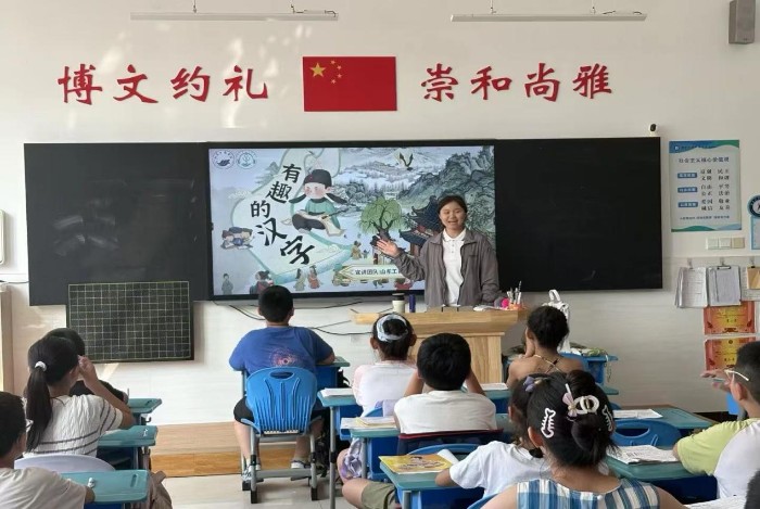 校園街舍播文韻 巧思新創(chuàng)綻風華 為以青春之聲喚醒沉睡的甲骨,讓千年的漢字文脈在傳播中流轉新生。首站煙臺大學附屬小學的課堂上,實踐隊員播放的動畫短片視頻為孩子們揭開漢字起源的神秘面紗。當被問及“‘水’字為何像流動的曲線”時,一只只小手爭相舉起,孩子們在問答中觸摸文字的肌理。“原來每個漢字都藏著故事和謎題,像偵探游戲一樣酷!”課后,孩子們攥著漢字思維導圖興奮地向實踐隊員們講道。古老的文字就此在孩子們心里埋下求知的種子。