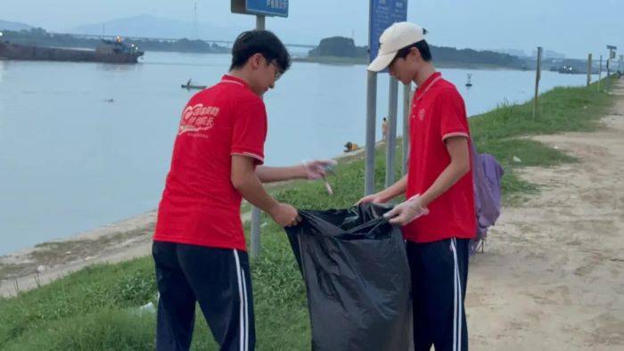 晚霞浸染的江堤上,躍動著一群青春的身影。實踐隊員們手持清潔工具,沿著蜿蜒的江岸線展開“地毯式”搜索。他們時而彎腰拾起塑料瓶,時而俯身夾取食品袋。落日的余暉為他們的身影鍍上金邊,歡快的談笑聲伴著潺潺水聲,奏響了一曲生態(tài)保護的青春樂章。他們深知,每一次彎腰拾起的不僅是垃圾,更是對美麗鄉(xiāng)村的守護;每一滴汗水澆灌的不僅是土地,更是鄉(xiāng)村振興的綠色希望。