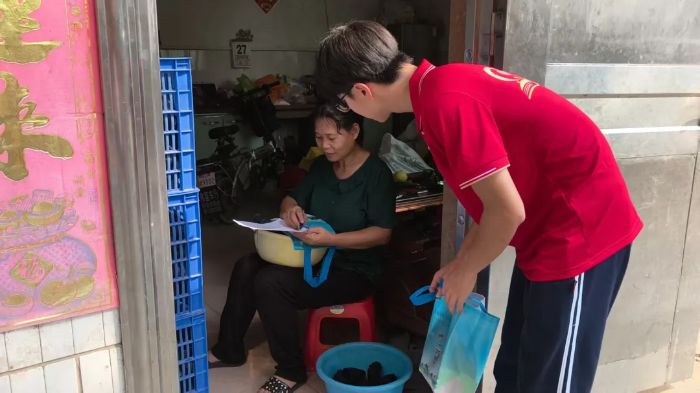 烈日當空,暑氣蒸騰,但隊員們的熱情絲毫不減,扛著米面糧油,沿著蜿蜒的村道開始了“政策送暖”之旅。在村黨委委員潘竟聰?shù)膸ьI(lǐng)下隊員們走進困難家庭,與留守老人和兒童親切交談,細致了解他們的生活狀況和子女教育需求。同時實踐隊員們暖心鼓勵學子們堅定信念、勤奮學習,用知識改變命運。