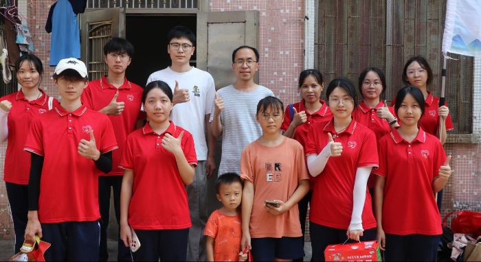 ▲圖為慰問結(jié)束時實踐隊員與第一戶困難家庭的合照