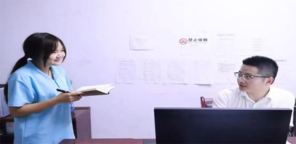 (圖為“青禾聲影”團(tuán)員采訪周信源同志。張貴瑩 供圖)