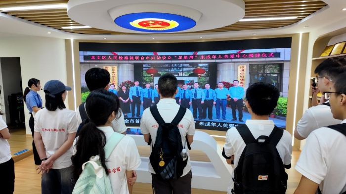 實(shí)踐隊(duì)員們走進(jìn)漳州市龍文區(qū)人民檢察院,開展了一場以“婦女兒童權(quán)益保護(hù)”為主題的深度研學(xué)活動。在檢察官的帶領(lǐng)下,隊(duì)員們參觀了未成年人檢察工作區(qū)、家事調(diào)解室等特色功能區(qū)。“不是每一個(gè)孩子都能擁有幸福的夢想,和其他孩子一樣,受傷后對未來充滿希望。”檢察官動情的話語讓隊(duì)員們深刻感受到未成年人保護(hù)工作的重要性。