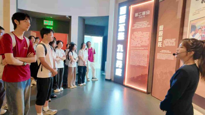 展館內(nèi),同學(xué)們沉浸其中,或駐足凝視,或屏息聆聽,輕觸展柜感受歲月沉淀,低聲分享著內(nèi)心的震撼與由衷敬佩。參觀后,大家共同感受到對中國女排艱辛奮斗史和“竹棚精神”有了更深切的認(rèn)識。女排姑娘們展現(xiàn)的為國奉獻(xiàn)的堅(jiān)定信念、百折不撓的拼搏精神和勇攀高峰的進(jìn)取心,必將成為激勵(lì)。大家立志在今后的學(xué)習(xí)生活中,弘揚(yáng)“祖國至上、團(tuán)結(jié)協(xié)作、頑強(qiáng)拼搏、永不言敗”的女排精神,錘煉鋼鐵意志,爭做新時(shí)代的奮進(jìn)者。