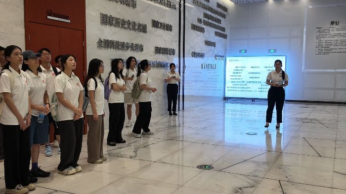 踏入漳州城市展示館,講解員向?qū)嵺`隊(duì)員們講解展示館各板塊。