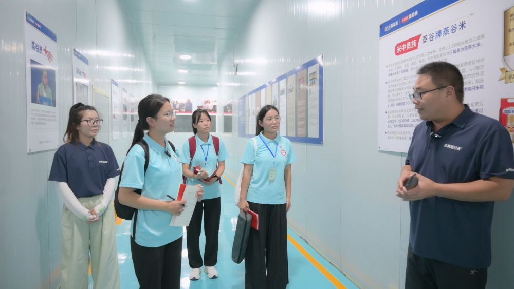 2025年7月21日,實(shí)踐團(tuán)成員走進(jìn)小崗村蒸谷米公司,目光被自動化生產(chǎn)線上流轉(zhuǎn)的稻谷吸引。他們圍坐在蒸谷米公司會議室的長桌旁,專注聆聽公司負(fù)責(zé)人講述產(chǎn)業(yè)發(fā)展歷程。他們不時在筆記本上記錄著企業(yè)從初創(chuàng)到規(guī)模化經(jīng)營的關(guān)鍵節(jié)點(diǎn),在詳實(shí)的講述中理解特色產(chǎn)業(yè)對鄉(xiāng)村振興的堅(jiān)實(shí)支撐。