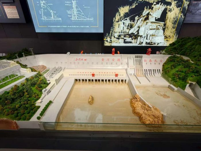 28日下午,實踐團成員來到三門峽大壩觀景平臺,站在壩頂極目遠眺,黃河水奔騰不息,大壩如巨龍橫臥,氣勢恢宏。在講解員的帶領下,實踐團成員依次參觀了大壩主體、展覽館、發(fā)電機組等區(qū)域。通過泛黃的工程圖紙、珍貴的建設影像和生動的沙盤模型,實踐團了解到三門峽大壩作為新中國“黃河安瀾”戰(zhàn)略的關鍵工程,歷經(jīng)60余年風雨仍發(fā)揮著防洪、防凌、治沙、灌溉等綜合效益。站在壩頂俯瞰黃河奔涌,成員們無不震撼于“人力馴服自然”的壯舉。
