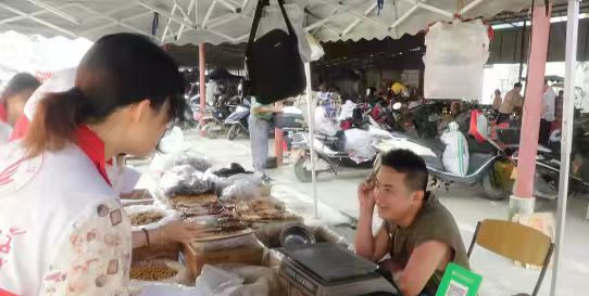 開幕式現(xiàn)場(chǎng)熱鬧非凡,巨大背景板上,金黃的無核黃皮與青綠山水交相輝映,無聲傳遞“生態(tài)+產(chǎn)業(yè)”的發(fā)展理念。全國各地的客商、農(nóng)業(yè)專家、網(wǎng)絡(luò)達(dá)人齊聚,共同見證這場(chǎng)盛會(huì)。活動(dòng)現(xiàn)場(chǎng),郁南無核黃皮系列產(chǎn)品構(gòu)成亮眼風(fēng)景線:清冽的黃皮果汁、酥香的黃皮酥、甜而不膩的無核黃皮餅……隊(duì)員化身“產(chǎn)品體驗(yàn)官”,細(xì)品風(fēng)味之余,向攤主追問制作工藝與市場(chǎng)反響:“黃皮酒發(fā)酵周期多久?線上銷量占比多少?”深入交談中,隊(duì)員們?cè)敿?xì)記錄銷售數(shù)據(jù),直觀感受到產(chǎn)業(yè)多元化發(fā)展的成果——從鮮果到深加工產(chǎn)品的全鏈條布局,彰顯著特色產(chǎn)業(yè)的強(qiáng)大生命力。
