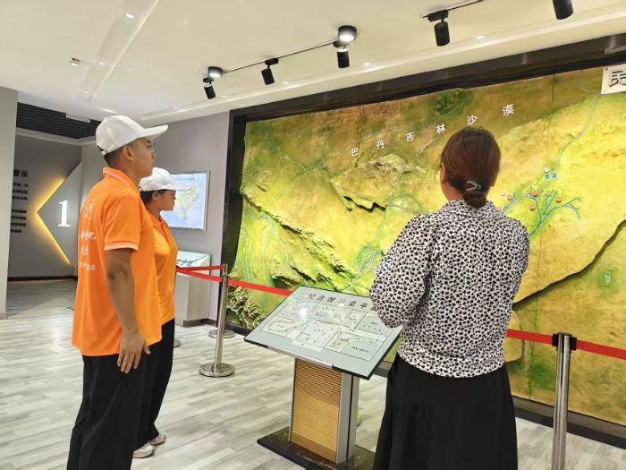 午后,實踐團隊前往參觀民勤防沙治沙紀念館。館內(nèi)的一幅幅圖片、一件件實物,都訴說著民勤防沙治沙的艱辛歷程。從早期簡陋的治沙工具,到如今先進的治沙技術(shù)設(shè)備;從一代代治沙人在惡劣環(huán)境中奮斗的場景,到如今沙漠逐漸變綠洲的成果展示,無不震撼著每一位成員的心靈。