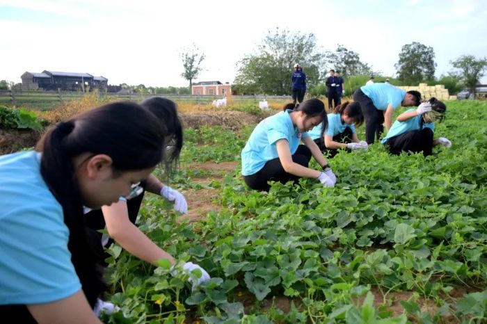 7月23日,實踐團聚焦勞動教育與產(chǎn)業(yè)融合開展實踐。上午,成員們在“責任田”體驗區(qū)參與“分田到戶——責任田勞作體驗”課程,在村民指導下進行除草,在烈日勞作中體會“一分耕耘,一分收獲”的勞動價值,增強對農(nóng)業(yè)生產(chǎn)的感性認知。下午,實踐團考察小崗村產(chǎn)業(yè)融合發(fā)展成果:在匠心葡萄園,調研“特色種植+鄉(xiāng)村旅游”的農(nóng)旅融合模式;在盼盼食品有限公司,了解農(nóng)產(chǎn)品深加工如何實現(xiàn)“從田間到餐桌”的價值提升;在電商直播基地,考察“農(nóng)產(chǎn)品+直播”的銷售新模式,系統(tǒng)梳理小崗村“農(nóng)業(yè)+加工+文旅+電商”的多元產(chǎn)業(yè)轉型路徑。