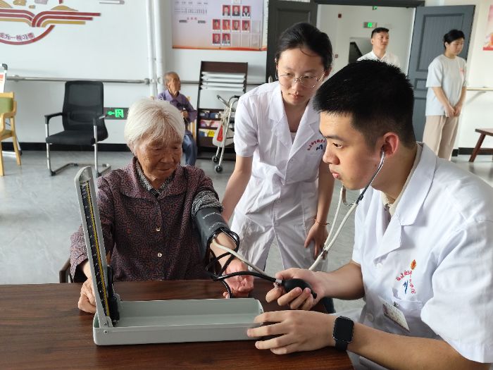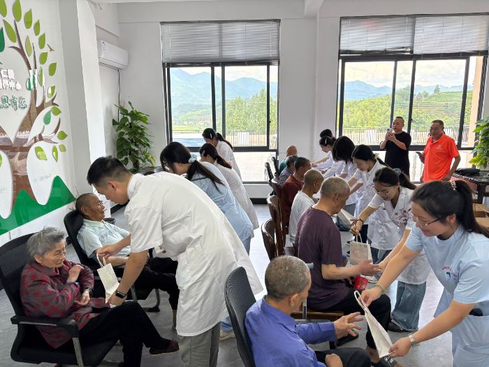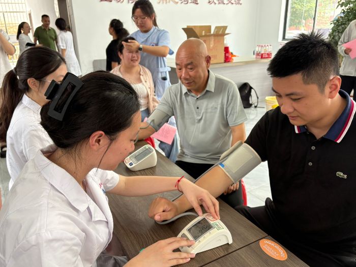 血壓監(jiān)測區(qū)域,隊員們對行動不便者躬身攙扶精準測量,細微之處盡顯醫(yī)者溫情。隊員化身健康數據 “捕手” ,細致記錄數值,從讀數校驗,到飲食作息的個性化建議,專業(yè)嚴謹與人文溫度交融,織就守護健康的細密網絡 。