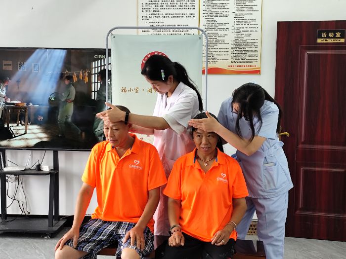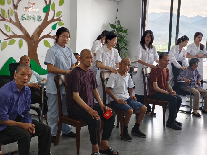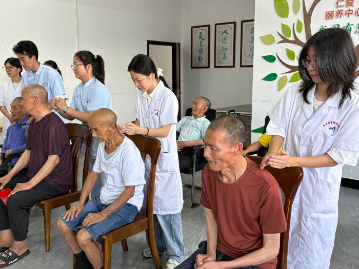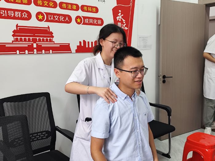推拿按摩區(qū),隊員嚴格遵循專業(yè)流程。立于老人身后,雙掌摩擦生熱后,精準覆于肩頸僵硬部位。隊員們指間游走經絡,于關鍵穴位處柔聲詢問力道是否合適,層層拆解經年累積的勞損。憑借扎實專業(yè)手法,助力老人舒展肢體,緩解酸痛疲憊。