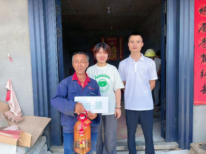 隨后,村干部和醫(yī)學(xué)院黨委副書記劉明珠帶領(lǐng)隊(duì)員們來到畬村,實(shí)地走訪了四戶脫貧戶,為他們送去牛奶、食用油等生活物資。同時(shí)還在村民家中開展福建助學(xué)政策宣講,詳細(xì)介紹了助學(xué)貸款的申請(qǐng)條件、流程及還款政策,助力村民更好地了解和利用教育資助渠道。這次親切的入戶交流,拉近了實(shí)踐隊(duì)與村民們之間的距離,進(jìn)一步強(qiáng)化了隊(duì)員們對(duì)鄉(xiāng)村振興和教育幫扶的認(rèn)識(shí)。