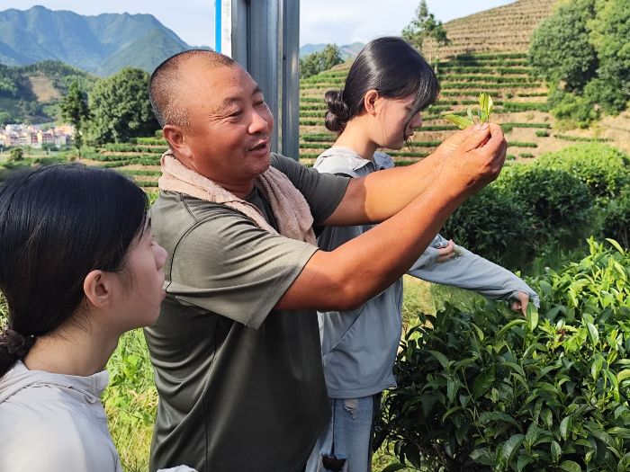 晨曦中的松溪茶山,醫(yī)學(xué)院實踐隊在何師傅指導(dǎo)下研習(xí)采茶技藝。“一芽兩葉,指腹輕折”。隊員分組實操,從手法生澀到漸入佳境,竹簍漸滿,茶香縈繞。這場實踐,既是傳統(tǒng)技藝的傳承,也讓青年學(xué)子在指尖觸碰中,感悟松溪茶文化的深厚底蘊(yùn)。