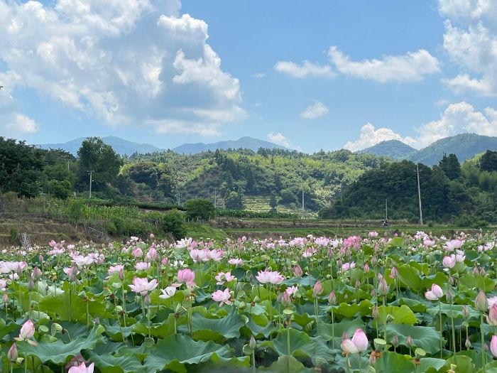告別紀(jì)念館的紅色記憶,茶平鄉(xiāng)機(jī)關(guān)黨支部的黨員們帶領(lǐng)實(shí)踐隊(duì)走進(jìn)充滿田園詩意的劉屯村,“接天蓮葉無窮碧,映日荷花別樣紅”,踏入劉屯村,連片荷花池映入眼簾,粉白蓮花或亭亭玉立,或半掩翠葉,微風(fēng)拂過時(shí)泛起層層清香漣漪,勾勒出一幅水墨氤氳的田園盛景。支部黨員們借此蓮喻“廉”,希望全體黨員和同學(xué)們都能似這蓮花般“以清為美、以廉為榮”,嚴(yán)守紀(jì)律紅線、廉潔自律、言有所戒、行有所止。