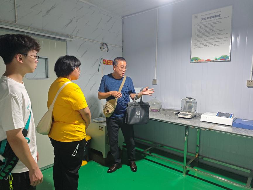7月29日,學(xué)生們還分赴藥企、農(nóng)產(chǎn)品檢測(cè)中心等單位開展跟崗實(shí)習(xí)。在藥企,他們認(rèn)真學(xué)習(xí)藥品儲(chǔ)存和管理規(guī)范;在檢測(cè)中心,協(xié)助工作人員對(duì)瓜果蔬菜進(jìn)行農(nóng)殘檢測(cè)。“我們先到企業(yè)辦公部門看見大家都在自己的工位上認(rèn)真工作,緊接著唐總將我們帶到物流部門,帶我們?nèi)タ戳怂幤反娣诺膸?kù)房,有陰涼庫(kù),常溫庫(kù),中藥材庫(kù),冷藏庫(kù)和特殊藥品庫(kù)房,每個(gè)庫(kù)房都有自己的濕度和溫度要求。藥品儲(chǔ)存?zhèn)}庫(kù)里每一排整齊的貨架、嚴(yán)格控制的溫濕度,都讓人感受到“規(guī)范”二字的分量——這不僅是對(duì)藥品的保護(hù),更是對(duì)用藥安全的鄭重承諾。唐總還告訴我們每次藥品到都會(huì)經(jīng)歷收貨,驗(yàn)收,抽樣檢查,入庫(kù),而且每次藥品都需要留樣,以便以后檢查。從分區(qū)存放的精細(xì)到出入庫(kù)記錄的嚴(yán)謹(jǐn),能直觀體會(huì)到藥品從儲(chǔ)存到流通的每一環(huán)都容不得半點(diǎn)馬虎,背后是對(duì)生命健康的敬畏。”學(xué)生說(shuō)。