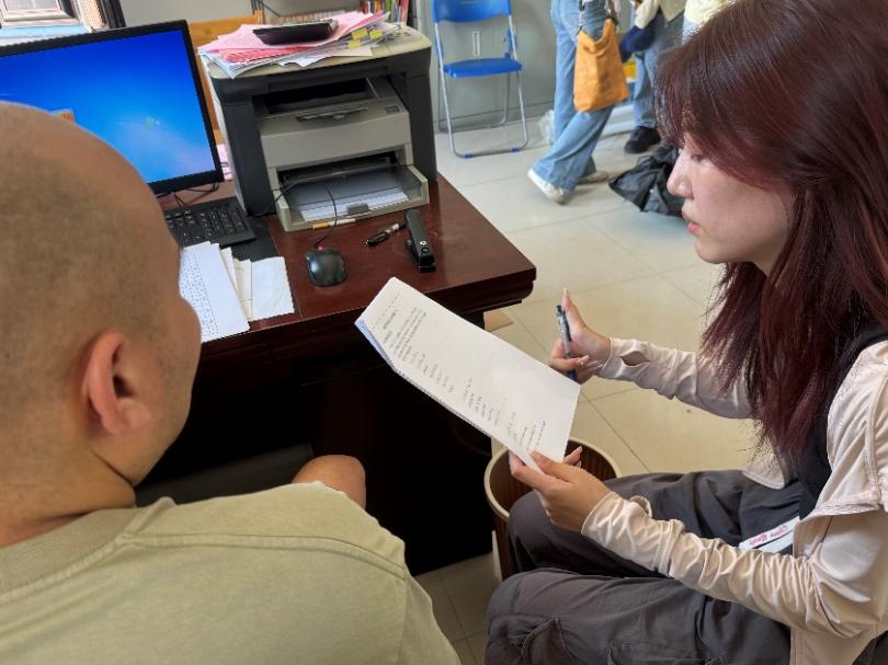圖為團(tuán)隊(duì)成員采訪村委會(huì)干部邢