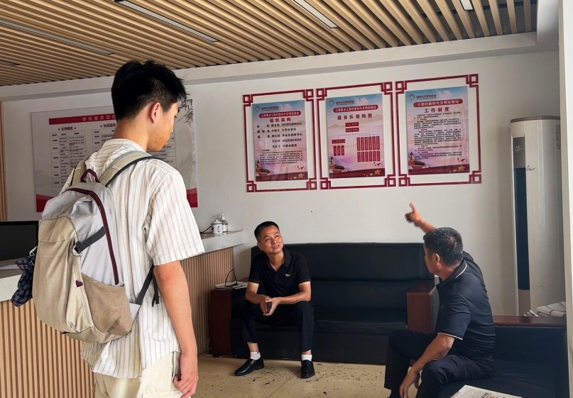 圖為隊員采訪三陽集村村委會負責人。胡夢佳供圖