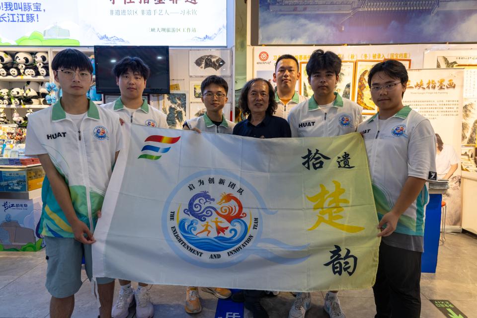 我們與習(xí)永欽老師進(jìn)行了對于未來的探討,他指出:三峽指墨畫現(xiàn)在還積極借助現(xiàn)代科技手段進(jìn)行傳播與推廣,通過舉辦線上展覽、制作數(shù)字藝術(shù)作品等方式,擴(kuò)大了藝術(shù)影響力,吸引了更多年輕觀眾的關(guān)注,為三峽指墨畫的傳承與發(fā)展注入了新的活力。而我們團(tuán)隊(duì)也為三峽指墨畫做出了些許傳播上的力量。并于習(xí)永欽老師在三峽景區(qū)的三峽指墨畫工作室進(jìn)行合影留戀。