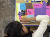 在墨香縈繞的傳統(tǒng)文化課堂中,志愿者們帶領(lǐng)孩子們執(zhí)筆繪制“百福圖”。在不同顏色的彩紙上,小書法家們屏息凝神,一橫一豎摹寫百態(tài)“福”字——從古樸莊重的“福”到生動(dòng)可愛的“福”,方寸之間盡顯漢字的古韻和靈動(dòng)性。孩子們邊聆聽“福”文化典故,邊將祝福傾注筆端:為父母祈安康,為家鄉(xiāng)繪豐年,為祖國書昌盛。當(dāng)無數(shù)形態(tài)各異的福字最終匯聚成絢爛的祝福圖騰,課堂化作流淌的溫情河川。這堂“以筆承愿,以福連心”的手工課,不僅讓書法之美扎根鄉(xiāng)土,更以漢字為媒串起代際情感,在方紙疊嶂間筑牢文化認(rèn)同的基石。