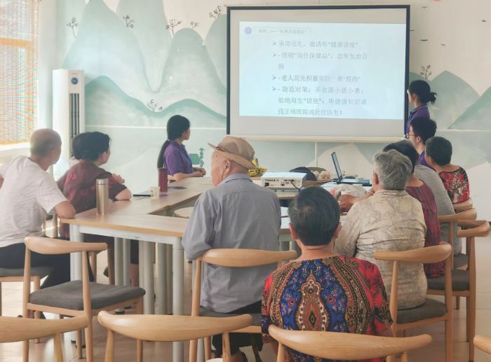 更具創(chuàng)新性的是,團(tuán)隊(duì)打破“傳統(tǒng)康養(yǎng)=守舊”的認(rèn)知,將AI技術(shù)引入服務(wù)場景。通過直觀演示,向老人普及AI智能在健康監(jiān)測、慢病管理中的應(yīng)用——AI問診系統(tǒng)提供初步健康建議,讓“智慧康養(yǎng)”不再是抽象概念,而是可觸可及的生活助手。同時(shí),針對(duì)夏季健康風(fēng)險(xiǎn),團(tuán)隊(duì)專題講解海姆立克急救法與熱射病預(yù)防知識(shí),通過情景模擬讓老人掌握“氣道梗阻急救步驟”“高溫天避暑要點(diǎn)”等實(shí)用技能,為安全養(yǎng)老再添一道防線。