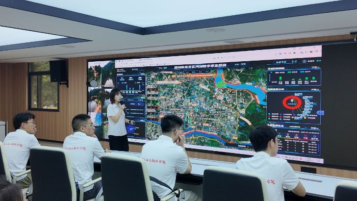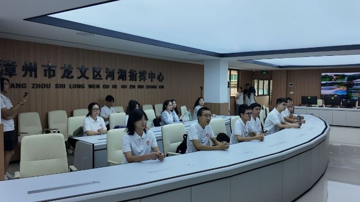拾階而上,隊(duì)員們來到了漳州市龍文區(qū)河湖數(shù)字孿生系統(tǒng)指揮中心,親身體驗(yàn)了河道治理與科技賦能相結(jié)合。通過大屏幕,實(shí)時(shí)查看各個(gè)九龍江支流的水質(zhì)水況和巡查概況;通過網(wǎng)絡(luò)安全監(jiān)控,查看實(shí)時(shí)的網(wǎng)絡(luò)安全數(shù)據(jù),強(qiáng)化了對水利安全態(tài)勢的感知、監(jiān)測預(yù)警和風(fēng)險(xiǎn)評估。