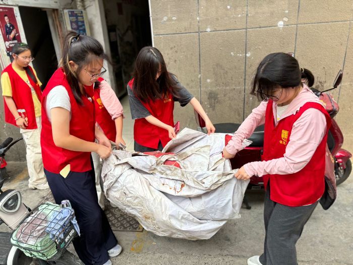 這支由計算機與信息工程學院24級大數(shù)據(jù)專業(yè)學子組成的志愿服務隊,帶著青春熱情深入社區(qū)街巷。團隊成員們手持掃帚、抹布穿梭在樓道街巷,仔細清理衛(wèi)生死角的枯枝落葉,耐心整理亂堆亂放的雜物。